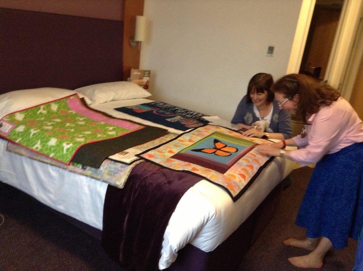 Thanks for the photos ladies. Love seeing the quilts all together - well except Maureen's. Are those CW quilts below as well? If so they went even further off course than us. And look at us all together - good of you to let Nancy have a run, but who's poodle is it? We need more photos!