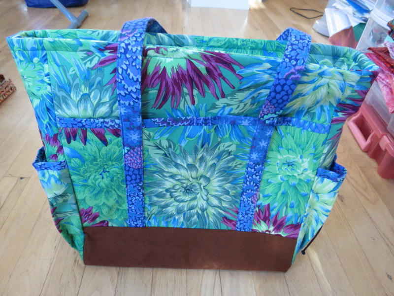 First is a bag for my niece who is a nurse. This is from a pattern from a Craftsy class (Quilt-As-You-Go Patchwork Bags by Tara Rebman). I used a bunch of different fill patterns on the different patches. It took a long time to do all of that dense quilting, but it was fun and was a good place to try new things.