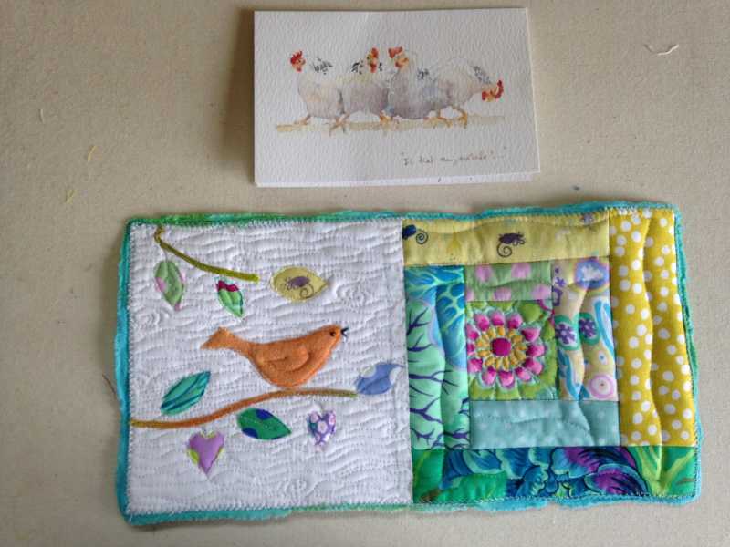 2. Zig zag round edges starting half way down one side. Use thread to match front of piece and set stitch width to about 1.5 and length 1.75. Lower your top tension to 3.25. Keep the edge at the centre of the needle position. Whiz round all sides.