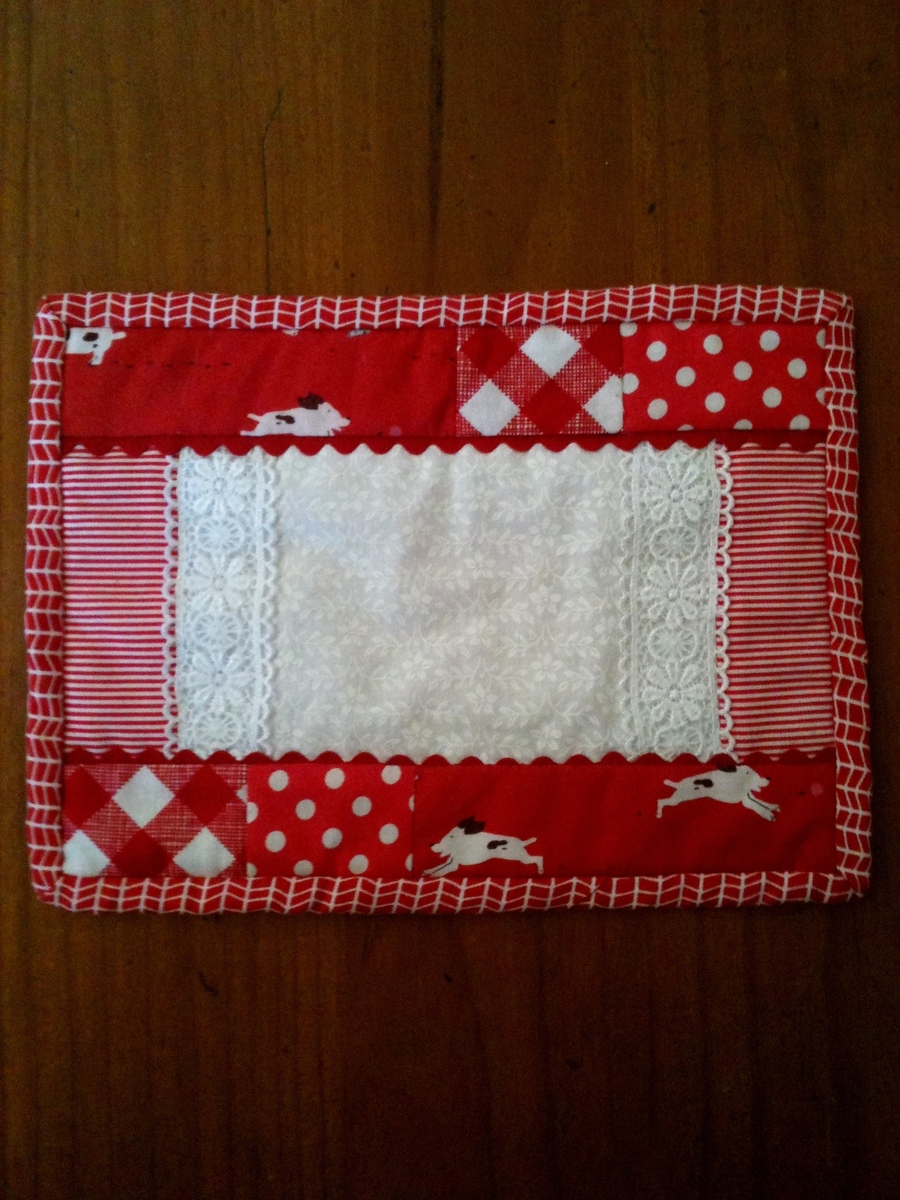Here's a mug rug that my son Matt made for his friend Kate - she loves handmade things and I think he was inspired by all the mug rugs coming into our house