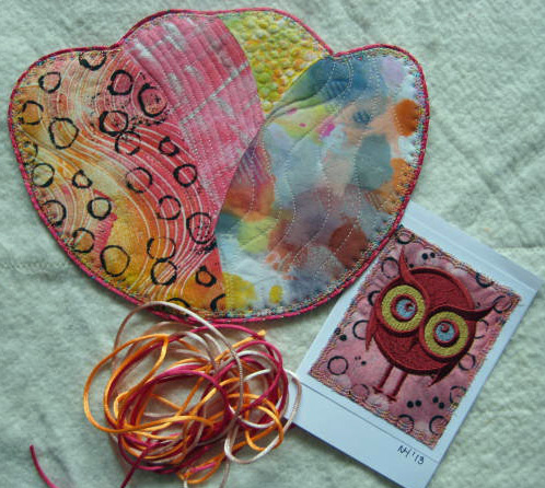 I have just received this gorgeous mug rug from Norma. Beautiful hand dyed and painted fabric. Love it to bits. There was also a beautiful embroidered card and some scrummy rat-tail binding. Thank you Norma.