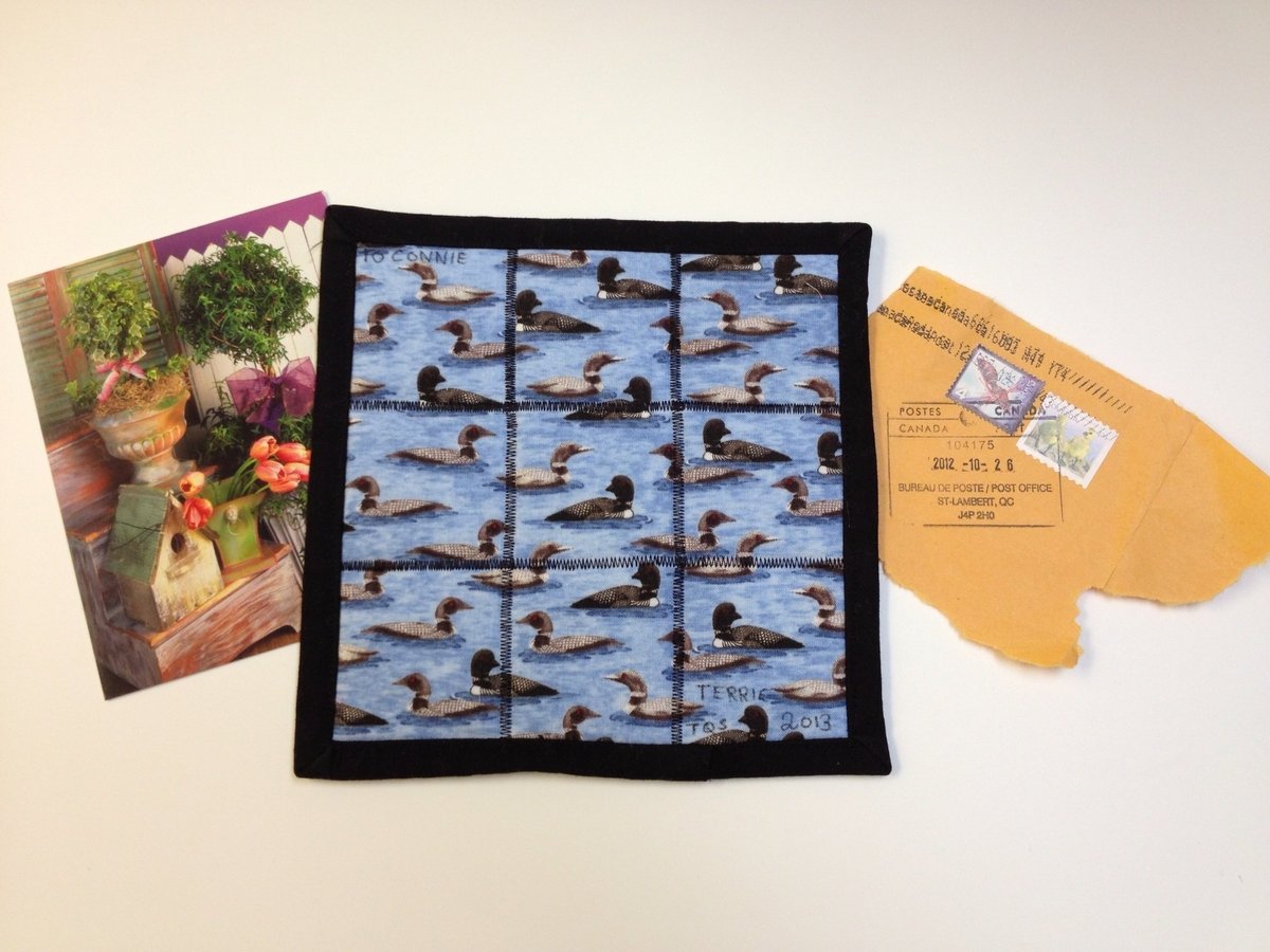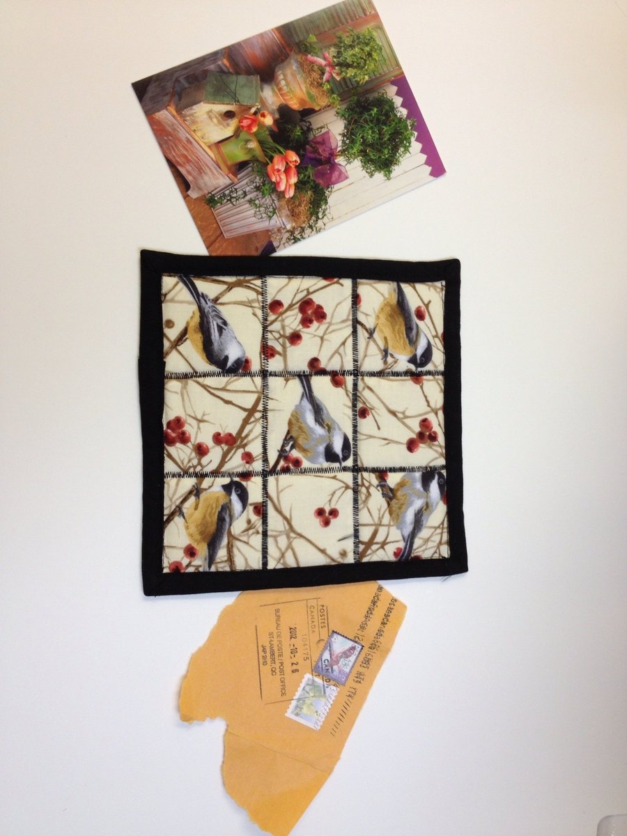 I received this beautiful mug rug in the post yesterday. Terrie made it for me and it really is smashing! It is all woven together and all the strips have turned in edges - like bias strips I think but it's perfect.