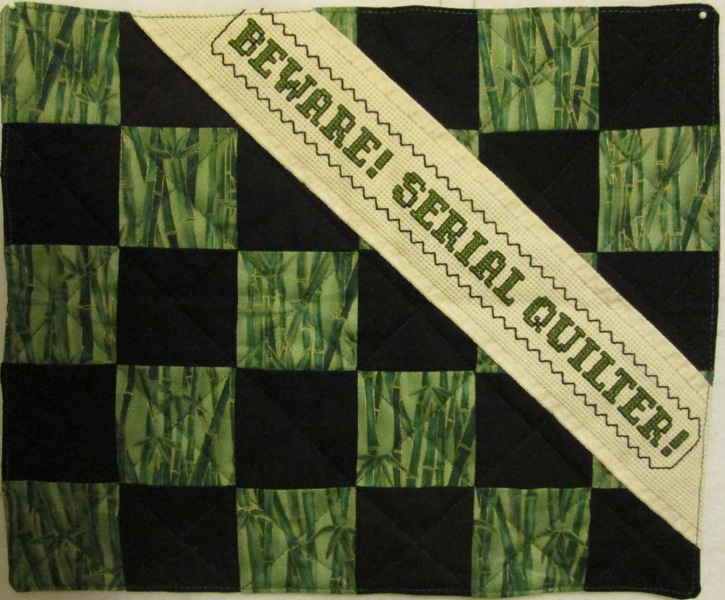 I can't remember if I posted my mug rug from Lorchen or not and I can't find it, trying to go through 122 pages of mug rug forum is just too tedious so here it is again...a beautiful cross-stitch on bamboo fabric, (green, a favorite color of mine