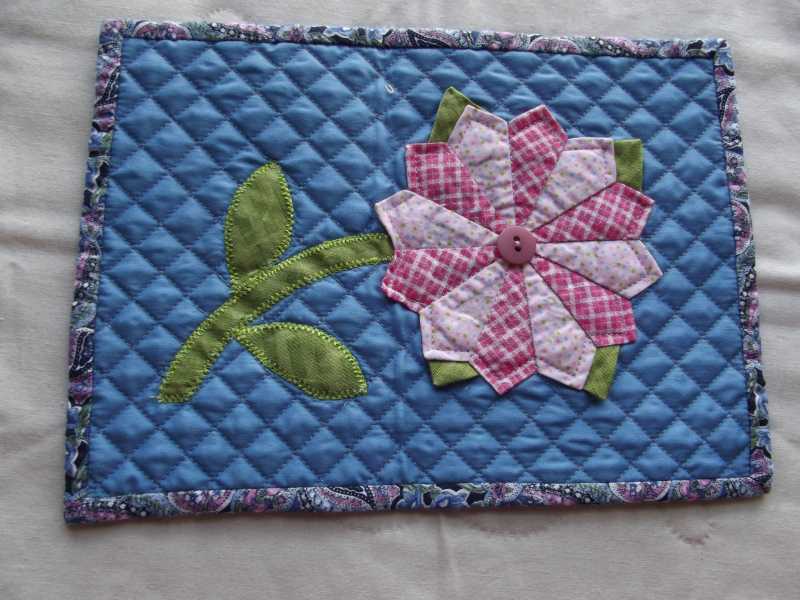 Here are pictures of two mug rugs I received a month or so ago. I'm so sorry they didn't get posted earlier and now they are both at my home in Williams and I'm down here in Wickenburg. And I didn't name them when I took the pictures so I don't remember who sent the blue one. I think the flower is from Terri...but my sincere thank you to both my LL friends. DH started developing some med problems and just last week found out he was suffering from major kidney issues. Thankfully since stopping all meds it seems the problem has nearly cleared up. Just had other things on my mind and totally forgot the muggies.