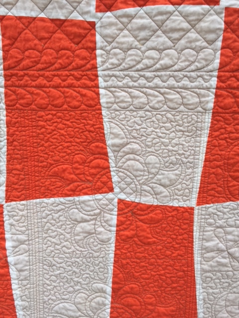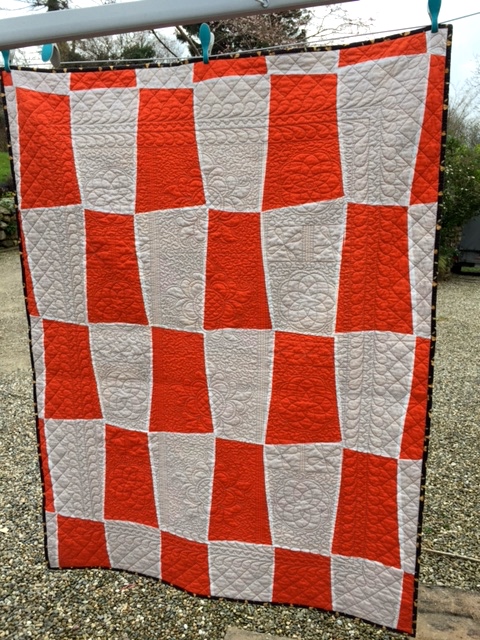 I just finished my first lap-quilt on Heidi (Bernina 750QE) and thought you might like to see it. This quilt is called 'Orphan'. It was made from orphan blocks from various classes and notions I took that didn't work out. In the end it has worked out just fine I think. The back was made from a panel I got at Ikea in the €1 bin. I had to piece it together to make it wide enough, but you can hardly see the joins.