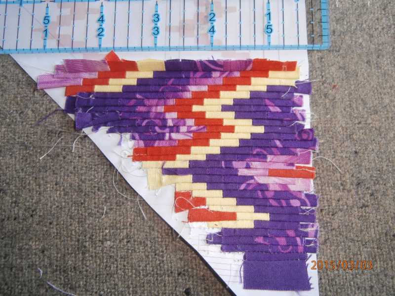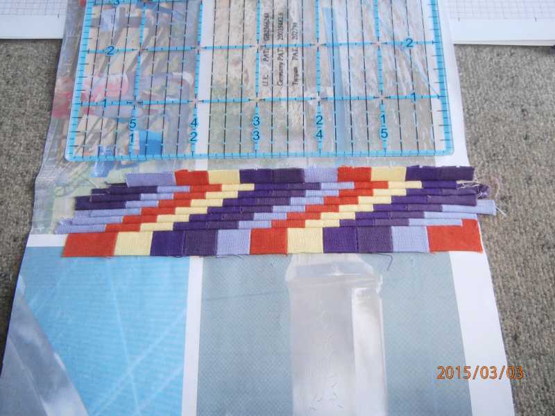 This was the first start, I just got plain fabrics, thinking that patterns were rather redundant at this scale. Unfortunately the 'mid' purple was more of a dark purple, just a different shade and the jump between them and the light was too much.