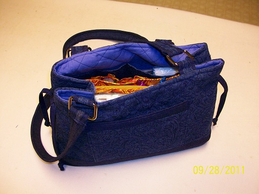 Neither of the other two bags I made had zippers. The large tote uses magnetic closures, which were easy to add. The smaller purse had directions for a button closure, but I left it off because I actually prefer a purse left open at the top.