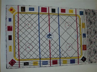 Before I quilted the grid, I might quilt the names of some of your favorite players in the area that they normally play. Of course, in big script, I'd quilt Luongo's name near or on the home goal, and I'd quilt the Sedin twin's names in the forward spaces, defensemen like Sammy Salo and Keith Ballard (he's kind of cute