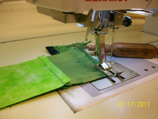 At the end of a chain of pieces, I sew off onto a "stoppy" which will then become the starting scrap for the next line of stitching.