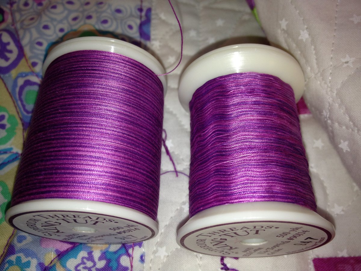 First of all, let me tell you that I've been to your seminar (Quilt Odyssey - Hershey 2011), follow all your appearances on TQS, and I receive and read the newsletter. Doing all those things has contributed to greater success with my sewing/quilting. However, I am having some difficulty FMQ/quilting with King Tut thread. It's breaking. Now this problem did not occur until after I got well into the spool. See the attached picture. You can see that the condition of the wrap on the spool has changed. Because it was late at night when the problem began occurring I went to my fellow TQS members on the Forum. I think you would be interested in the discussion that followed. Here's the link to the thread. You'll have to cut and paste because I don't know how to embed the link so you can just click on it.