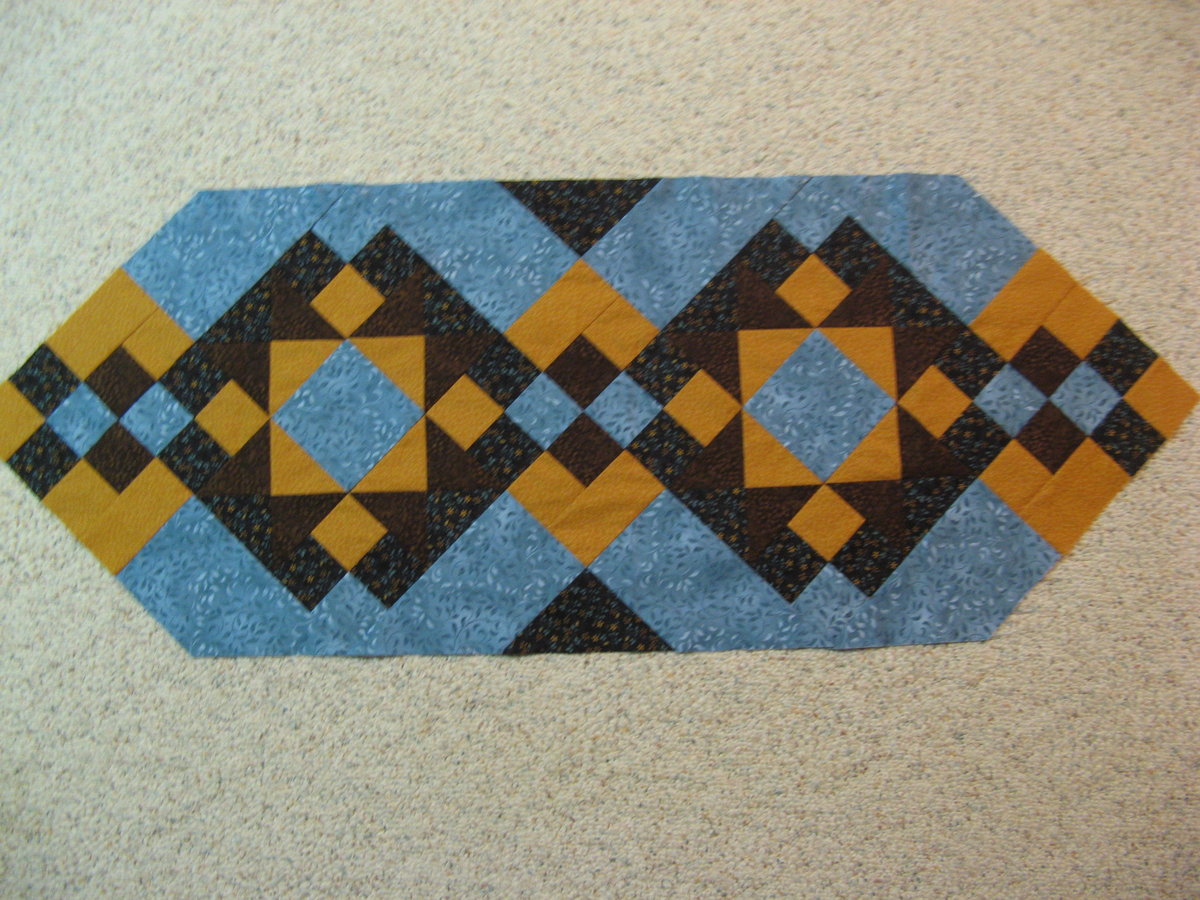 Debbie you can do beautiful quilting without using free-motion quilting. For example if you google quilting stencils you will see all sorts of lovely designs done with a walking foot. For example, basket-weave cable, diamond cable etc., I think Rosemary's suggestion is a good one. The piece is saying diamond cable to me - you could make it 3 diamonds and then rectangular or curved cables in between or something like that. I try to do as much of my quilting with the walking foot as possible so that I can keep the frustration to a minimum. I did a couple of quilts recently and used a diamond cable in the borders with my walking foot. And if the curve is gradual then you can use the walking foot for that too. But I would definitely start with SID around all the seams, after which anything you add will be a bonus because it will already be quilted enough by then. Show us when you are done won't you?