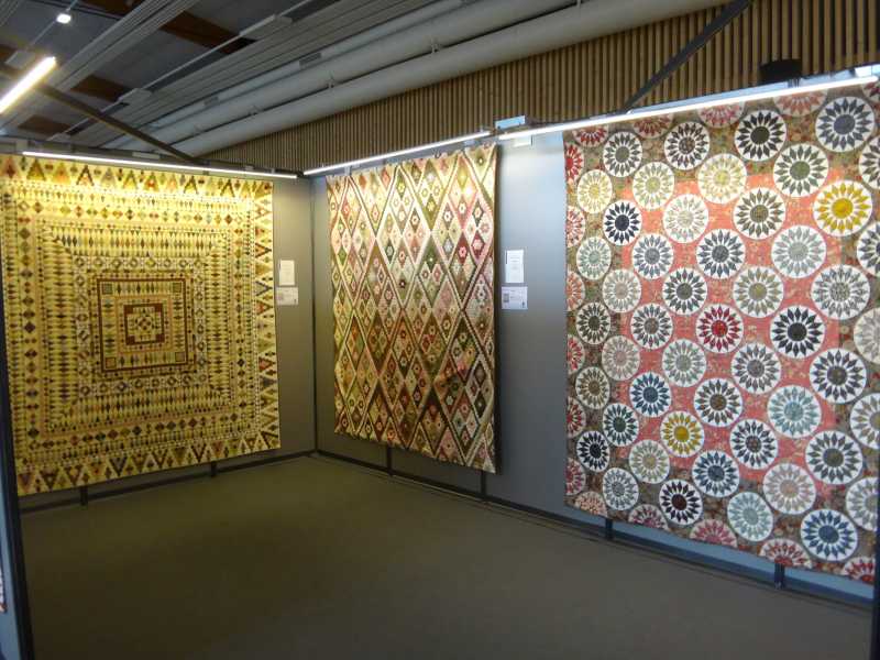 These quilts (in a not so clear picture) are part of an exhibit of France Patchwork where they made reproductions of antique quilts.