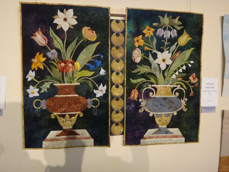 I loved this exhibit from Italy! It's called "Treviso, painted Town". The synopsis: Treviso is also called the "painted town" for the numerous and beautiful frescos which embellish the frontages of its palaces, churches and monasteries. Patchwork Idea's goal was to highlight those wonderful and unique wall paintings by representing in their quilts their typical colors and patterns, telling thus a little bit of this town's history. Some of the works exhibited will bring out the typical Treviso's natural and architectural characteristics as well as some aspects of the province.