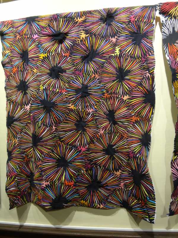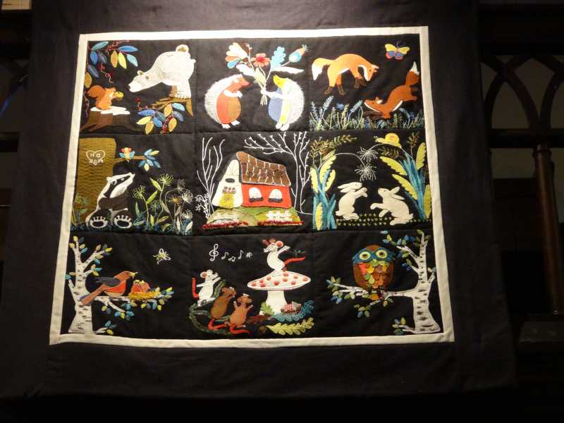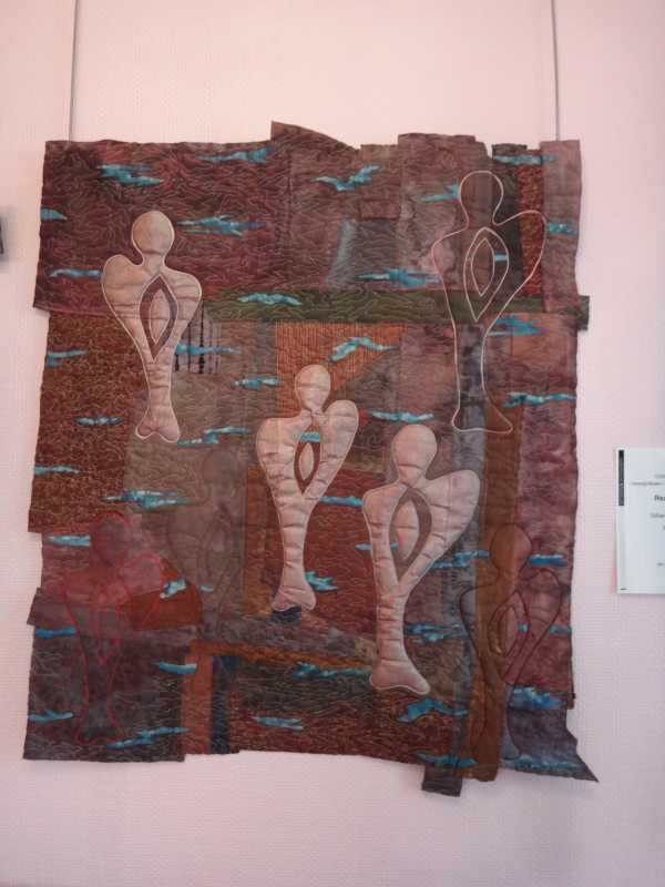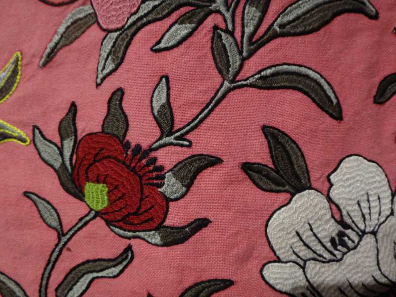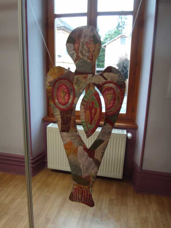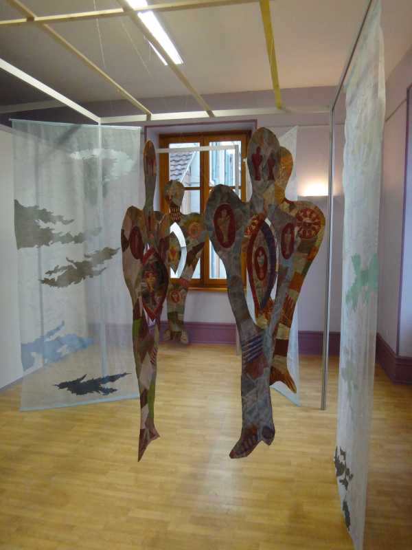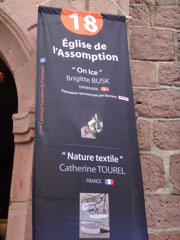 Exhibit 13 in Eglise Saint-Nicholas was pretty amazing. It’s entitled We All Love Flowers and is a collaboration between German and Afghan artists. The group in Germany provided the fabric and the group in Afghanistan embroidered the flowers. The embroidery is exquisite and looks like printed fabric!