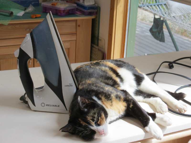 Nancy your kitty knows how to keep warm. My Pickens is the same she jumps up and rolls even before I turn the iron on. It's ok I read on your blog the iron is off.
