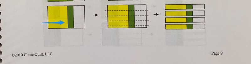 Becky, in Month 4, the Pieced Swags are introduced and Sue talks again about "cut parallel to the selvage". I can see the confusion. You want the 1.5" x 5.5" pieces to be as stable as possible, so the lengthwise grain--that is parallel to the selvage--to be along the 5.5" length. So cross cut the strip 5.5" then sub-cut into 1.5" units.