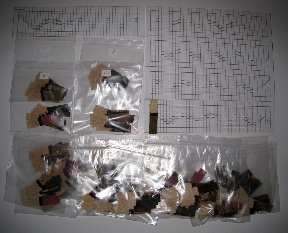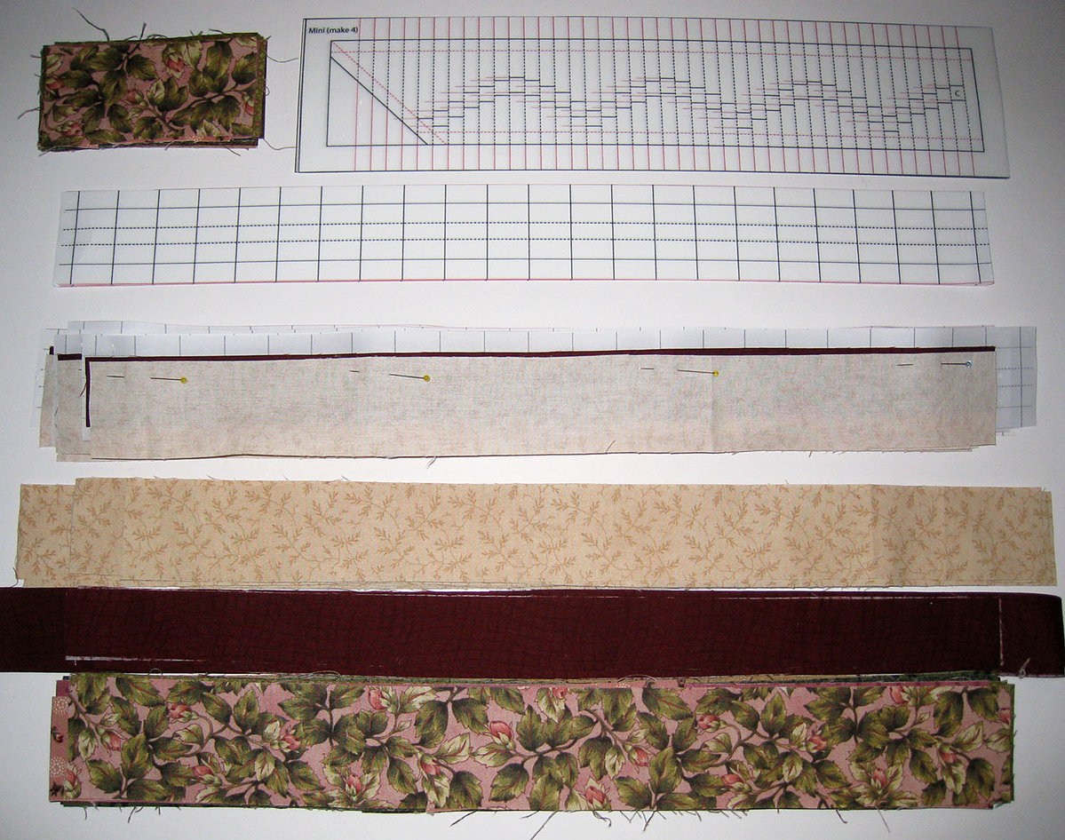This border was quite challenging. I started piecing it using my on top method but was having trouble staying on the line, possibly due to the bulky seams, the horizontal pins that distorted the paper (I usually place them vertically), and the fact that I was using a different sewing machine than usual because my main machine was making strange noises and is long overdue for a tune-up. I made it through 7 strips on each before having to do an unsew. That is when I started turning it over and sewing on the line on the back side which required using 4 pins instead of 2 because I didn't allow for excess seam allowance. I ended up with layered seams that required very little trimming. I'm thinking this border on my Christmas BOM is going to be much easier.
