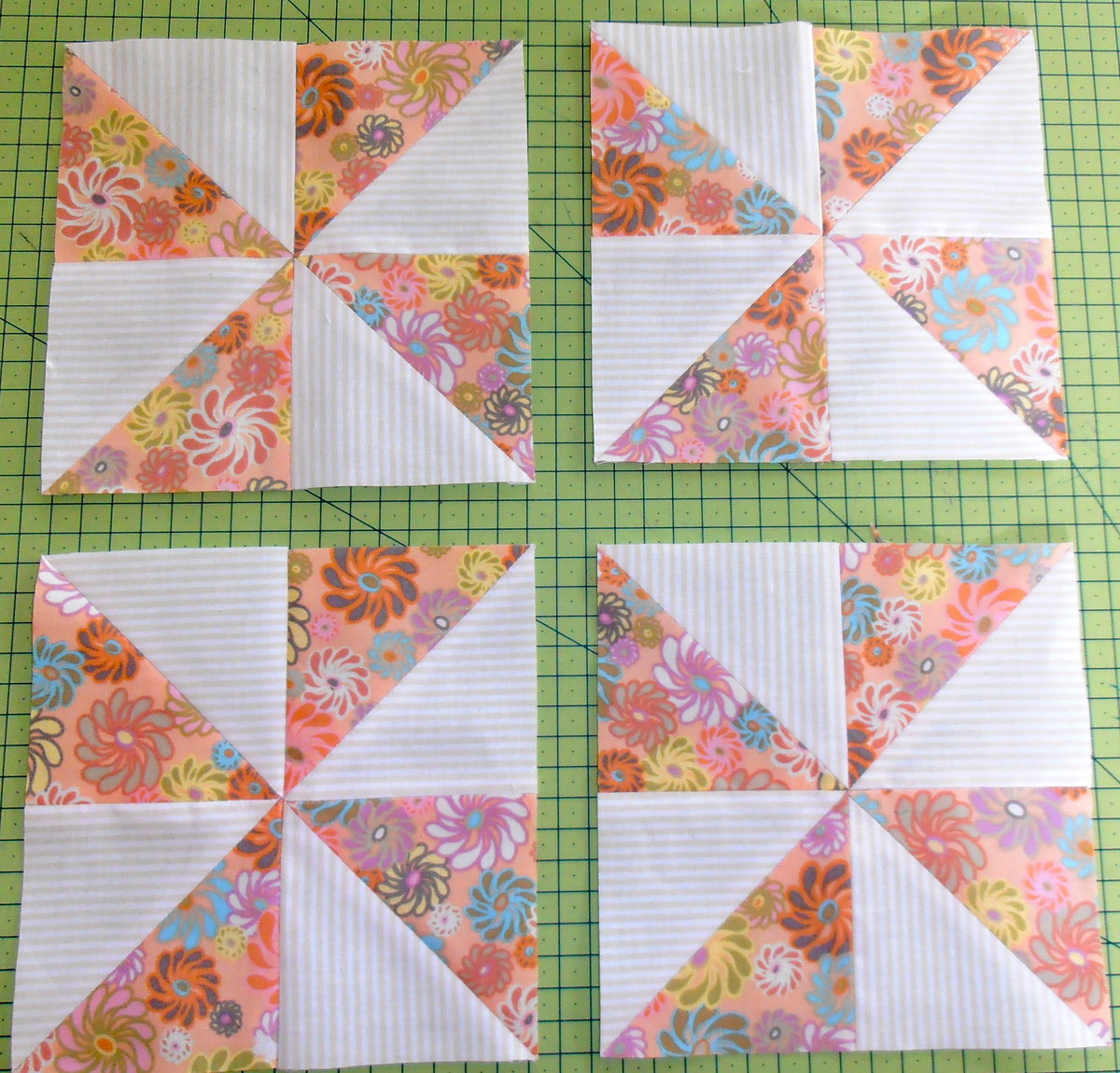 Now I have to figure out how to make markings for the HSTs because the table on my machine is too small to accommodate the diagonal of 4" squares. Through the 9-patch experiments I have found that the ¼" foot I have and my ruler do not work well together. The foot takes to big a bite so there is negative space for the thread! I could cut the squares larger that would surely work but I actually prefer to use the ordinary foot on the machine because the ¼" foot pushes the top fabric more than the ordinary foot does and that will surely be important when doing something on the bias despite it being done across the square. There is a lot more to this patchwork malarkey than meets the eye