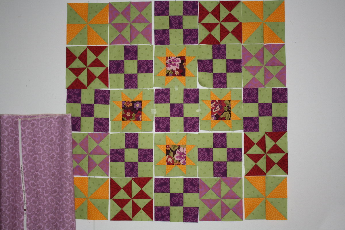 How to fix it, I really don't know, would adding clean pure colours work? or adding in the last 2 complimentary colours (blue & orange)- not sure about that....going paler? going darker? both? Lots of fabric auditioning and taking photos as you go is probably your best bet.