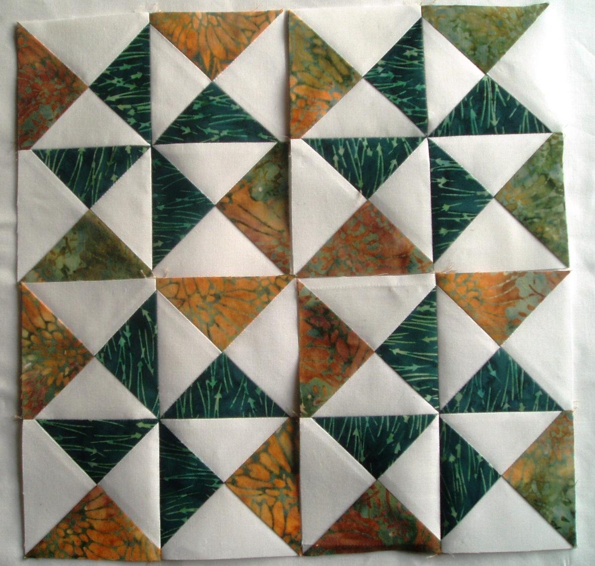 4th PIct show how "This will allow the seam allowances to ALL be pressed in a clock-wise or counter clock-wise direction, depending on the orientation of your blocks."