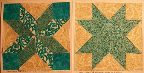 For lesson one, I just cut fabric shapes and glued them to the printed pattern.