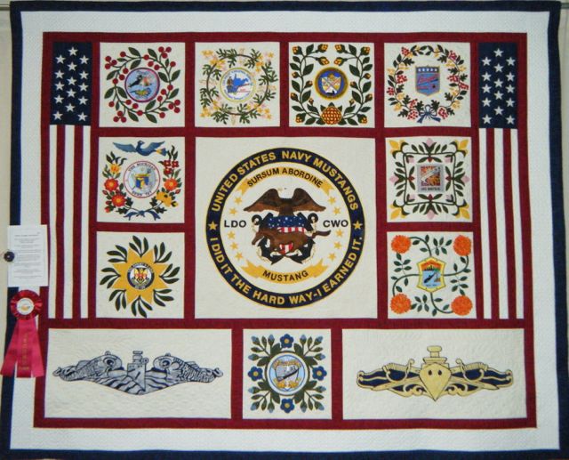 Honor, Courage, and Commitment. This was made to honor my husbands 30 years in the USN. I collaborated long distance with my sister on the construction.