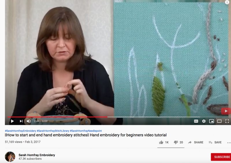 some of the previous stitches and then cut off the thread. Hope this helps. HelenW I included a screenshot of a you tube you can google to actually watch it.