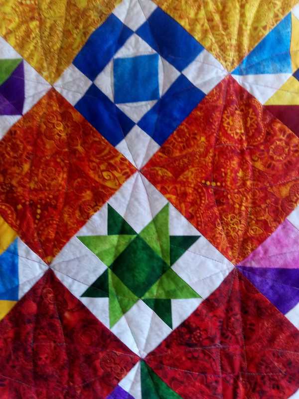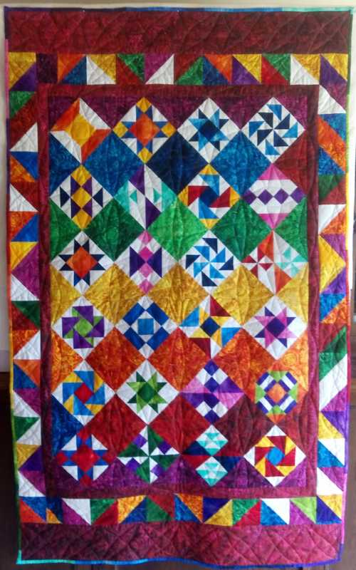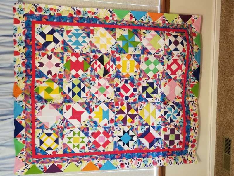 To mbird, your quilt is beautiful. I love the sashing. It helps calm down a very busy quilt and makes the blocks stand out beautifully. Great job. Love the border too.