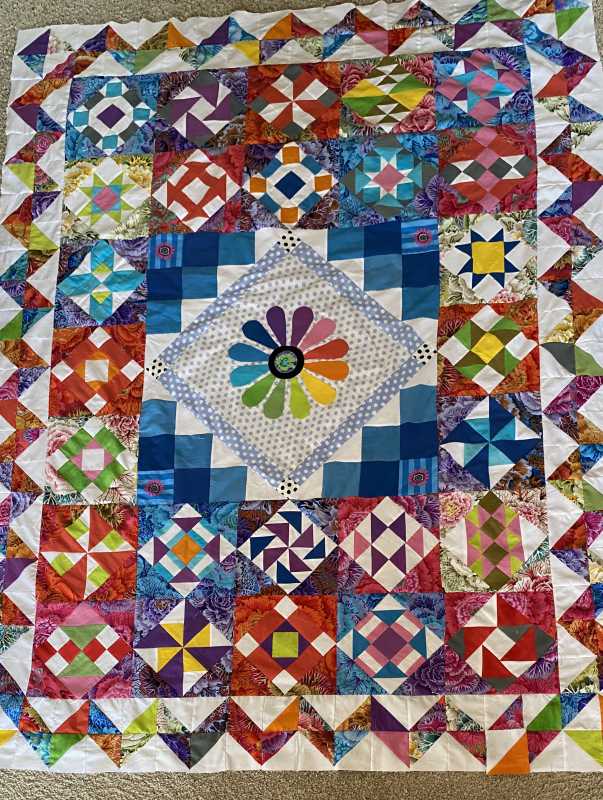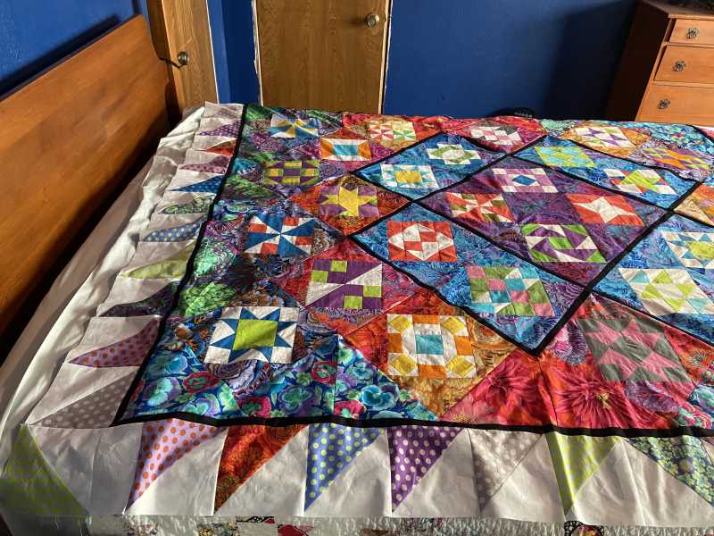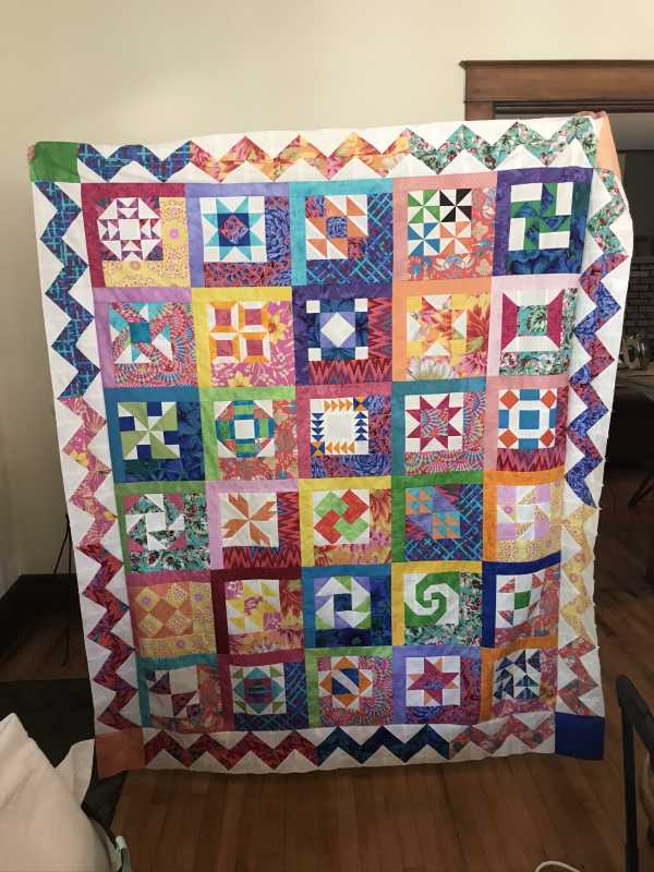 Thank you, Alex. I have learned so much. I used the color wheel & Kaffe fabrics to learn how and why colors combinations work and don’t work, my accuracy has improved, and I made and used a design board. The layout was a struggle. It is a good thing I am not a perfectionist or it would never have gotten done. Looking forward to the Basket Puzzle quilt but will be using fabrics from my stash.
