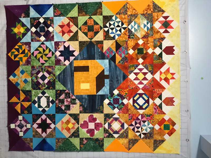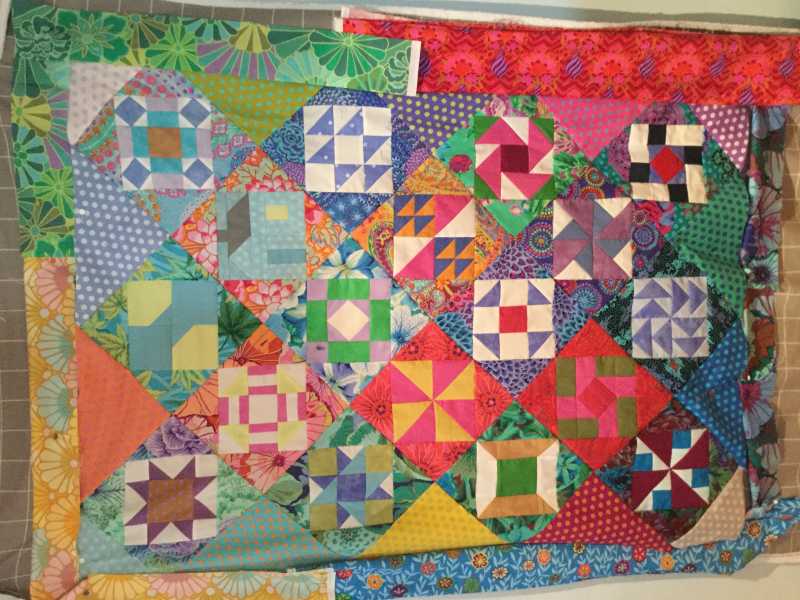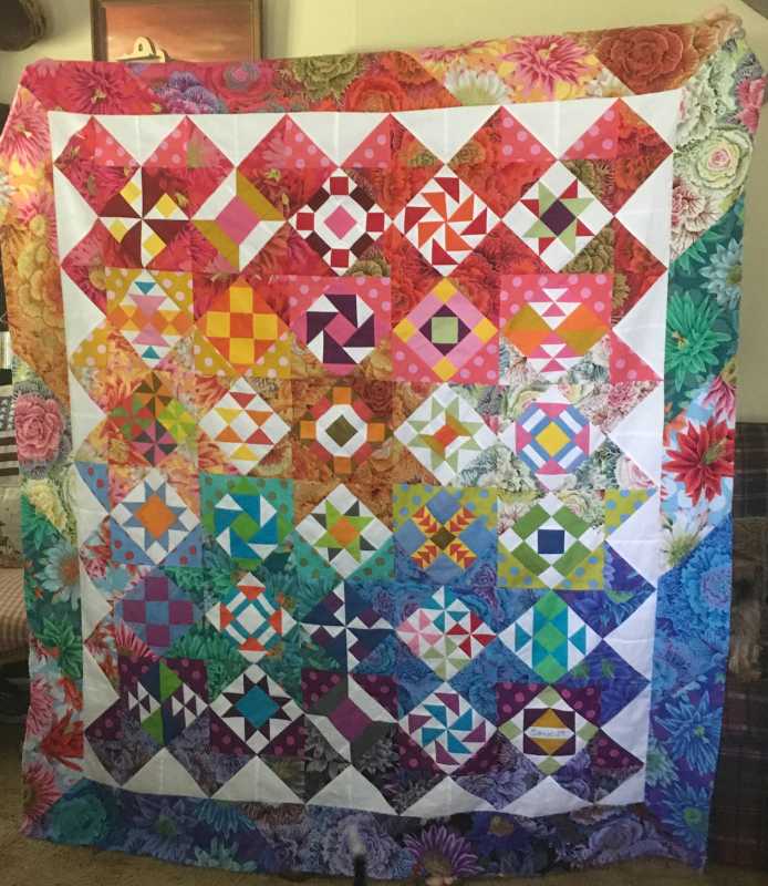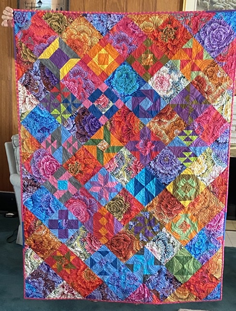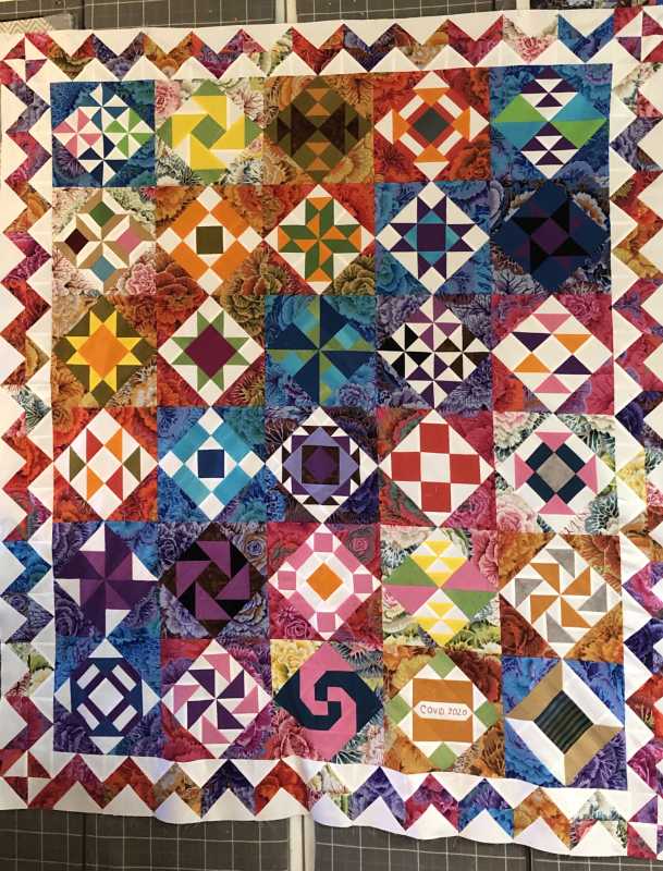I loved making this quilt with Alex and the group. It was truly a mystery to me until I got to the finished layout. I didn’t care for white in the blocks so I went with a more blended effect. I’m happy with the final quilt. Thanks so much Alex.