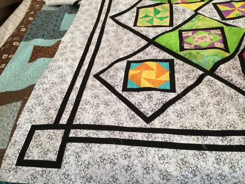 I’m waiting for more fabric to finish the border. I borrowed the layout from other’s ideas. It’s been a fun experience and definitely got me out of my comfort zone!
