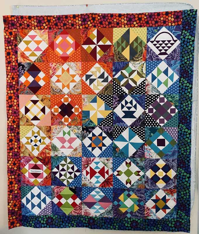 Thank you Alex for filling these past 4 months with such a fun and constructive distraction. It was wonderful having something to look forward to during this time. I had such fun even when I was swearing at a block. There were several that were $#&@@! Thank you John for all your hard work behind the scenes. And thank you Barbara you little saint you. You've been so patient and you've made navigating the Forum less stressful for many of us. I love my quilt. It will hang in my sewing room for years to come and will always remind me of this time. Just plain Thanks guys! My Covid quilt became "MY Happy Quilt." And that is it's name.
