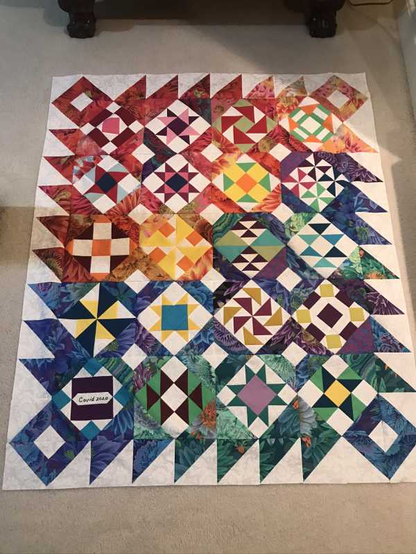 My Mystery Quilt top is done but I have had trouble posting the picture. It was very challenging and stressful but I accomplished it.. I learned alot from the color wheel and worked with Kaffe Fasset fabrics.. The solid colors were not in my comfort zone but with the Help of Alex tips and lessons, I accomplished it.. Thank you Alex for taking your time and giving us a distraction from the worldly problems.