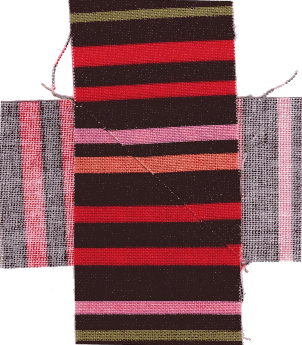 the piece you saw in the picture. I was going to do a straight stitch on the horizontal but, once the stitches were out, there was still the diagonal fold remaining. So that made me think, "what about if I match up the stripes closest to the diagonal with the fabric of the other strip?" Then I glued it on to keep it in place for sewing... and it worked! So, yes, what you said made total sense and I'm glad to have confirmation from you that this might be a good way to go. Lois, would you believe I don't have a lightbox yet? I know how to put a makeshift one together but I'm hoping when DH builds my sewing room furniture, he will build one into my cutting area...