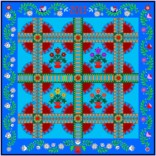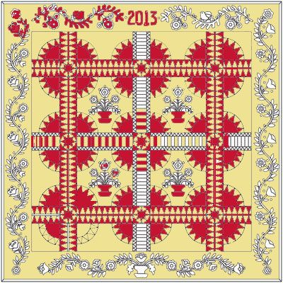 I printed the Fabric requirements, and my printer did not print the colors correctly (missing some red ink...), so the flowers turned out yellow, and I have to admit, it looks like I found MY colorway! So, turquoise/aqua for the background, and different shades of yellow/yellow-orange for the flowers, plus a few greens for the leaves, stem, etc. This will not be a scrappy look, but I intend to use more than 4 greens, more than 4 yellows - but only 4 turquoise. Ordered from Jinny Beyer Studio, can't wait to get started!