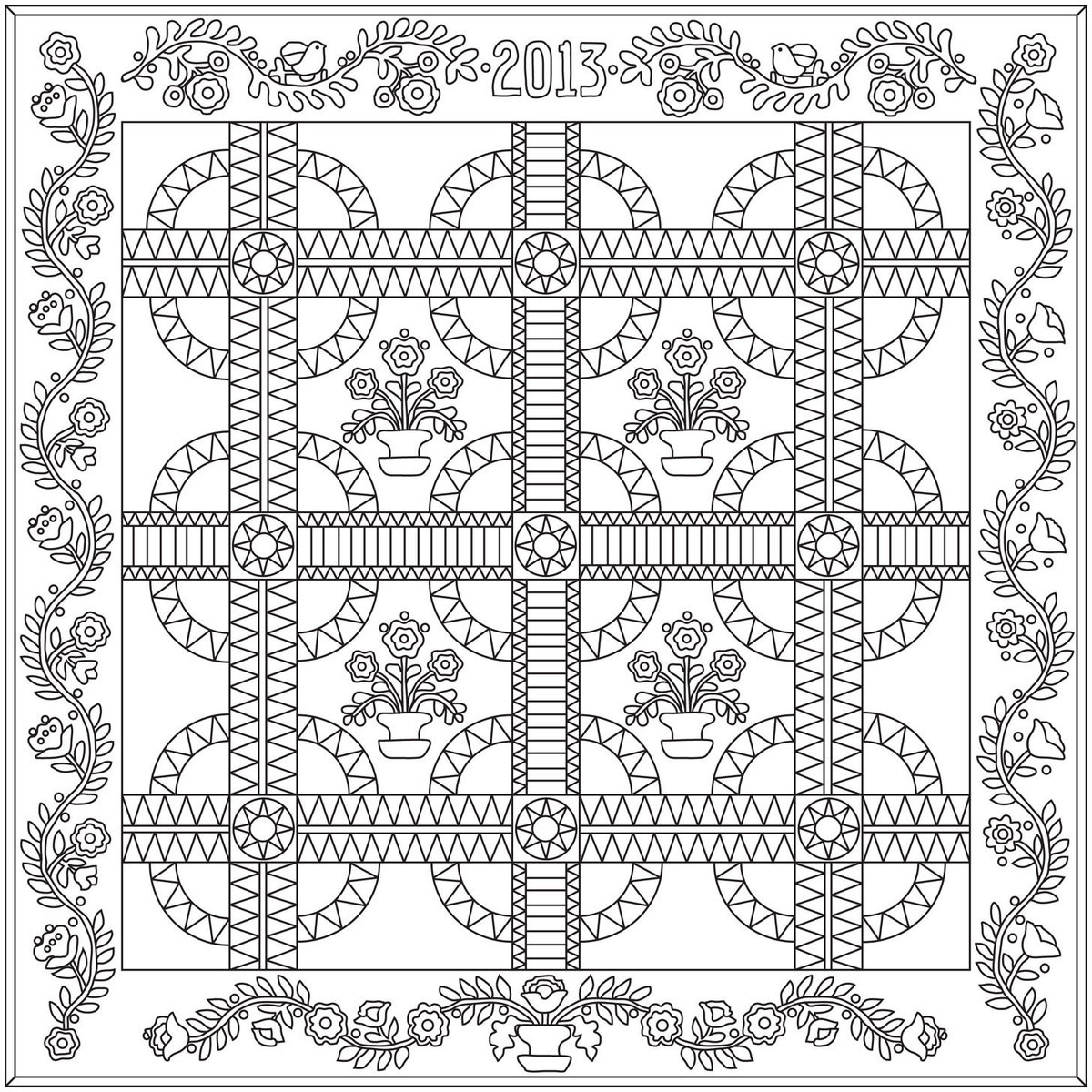 OK, it is a bit rough, essentially it is a tracing of the photo of the quilt, so it is not square, but hopefully it will help those who want to play about with different colourways