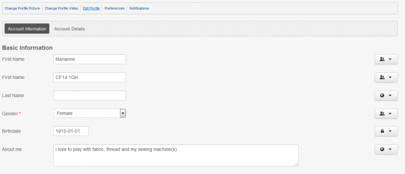 When I go to Profile - Edit Profile this is what I see: