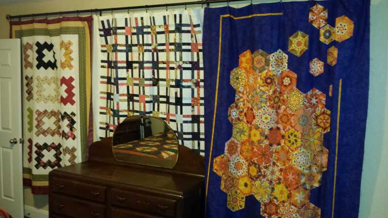 I added rods and clips to my guest bedroom to hang tops up....that way the creases hang out and I get to glance at them more often so I can think about how to quilt them.