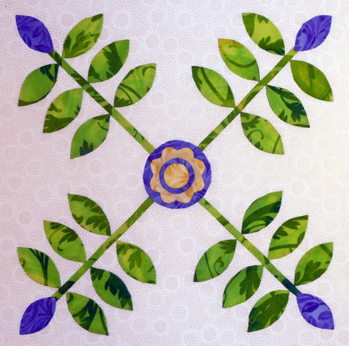 "Classic Crossed Leaves" Crossed laurel leaf blocks may be found in many early album quilts but, oddly enough, they were not found in any published books, magazines, or newspaper articles until the twentieth century. They are lovely designs, and may be found in many red and green quilts of the mid-1800s. Let's put some of those classic leaves in our quilt; it's time to start sewing!