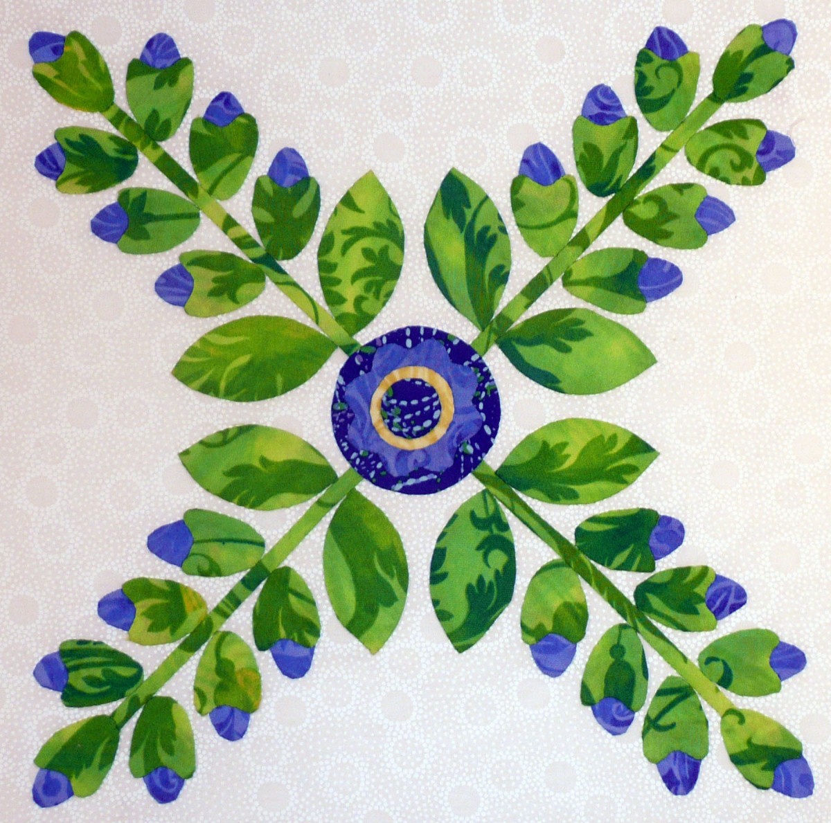"Crossed Buds" This month, you will be making another set of crossed branches: a set of stems full of flower buds. I love flowers - and especially the delicate flower buds that show their faces in spring. Let's start sewing so that you, too, can enjoy these flower buds!