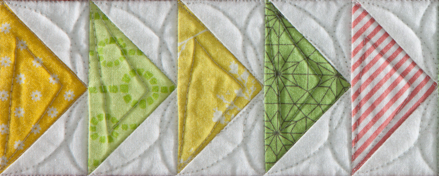 This month you will finish making the Delectable Mountain blocks. You won’t be ready to add them to the quilt this month, but you’ll be close.
