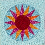 Posts On: September 1, 2012This month you will add the setting “triangles” to create a big circle, and then add a paper pieced circular border. The setting “triangles” are a great place to feature some really cool quilting or trapunto. Check out the video for some ideas. You’ll find a few templates for quilting included in the instructions.