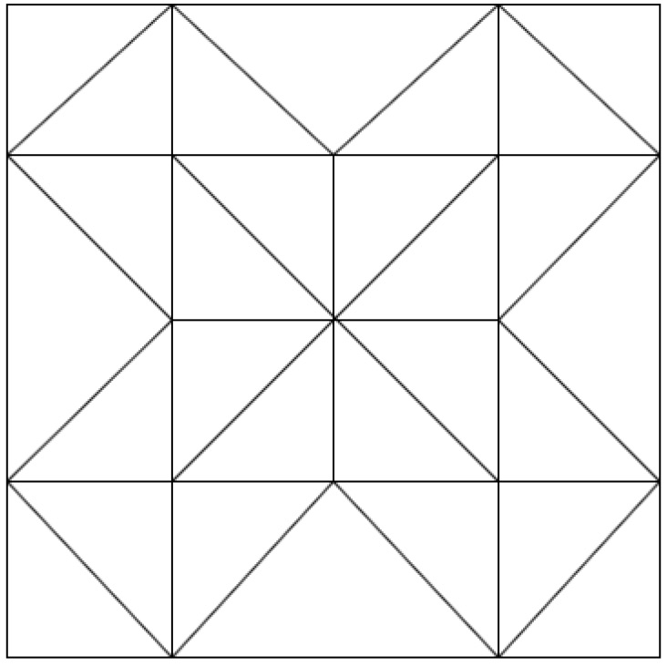 Practice Exercise for Lesson 17 of The Art of Quilt Design: Elements of Design - Harmonious Split-Complementary Colors. - Split Complementary - Block 1