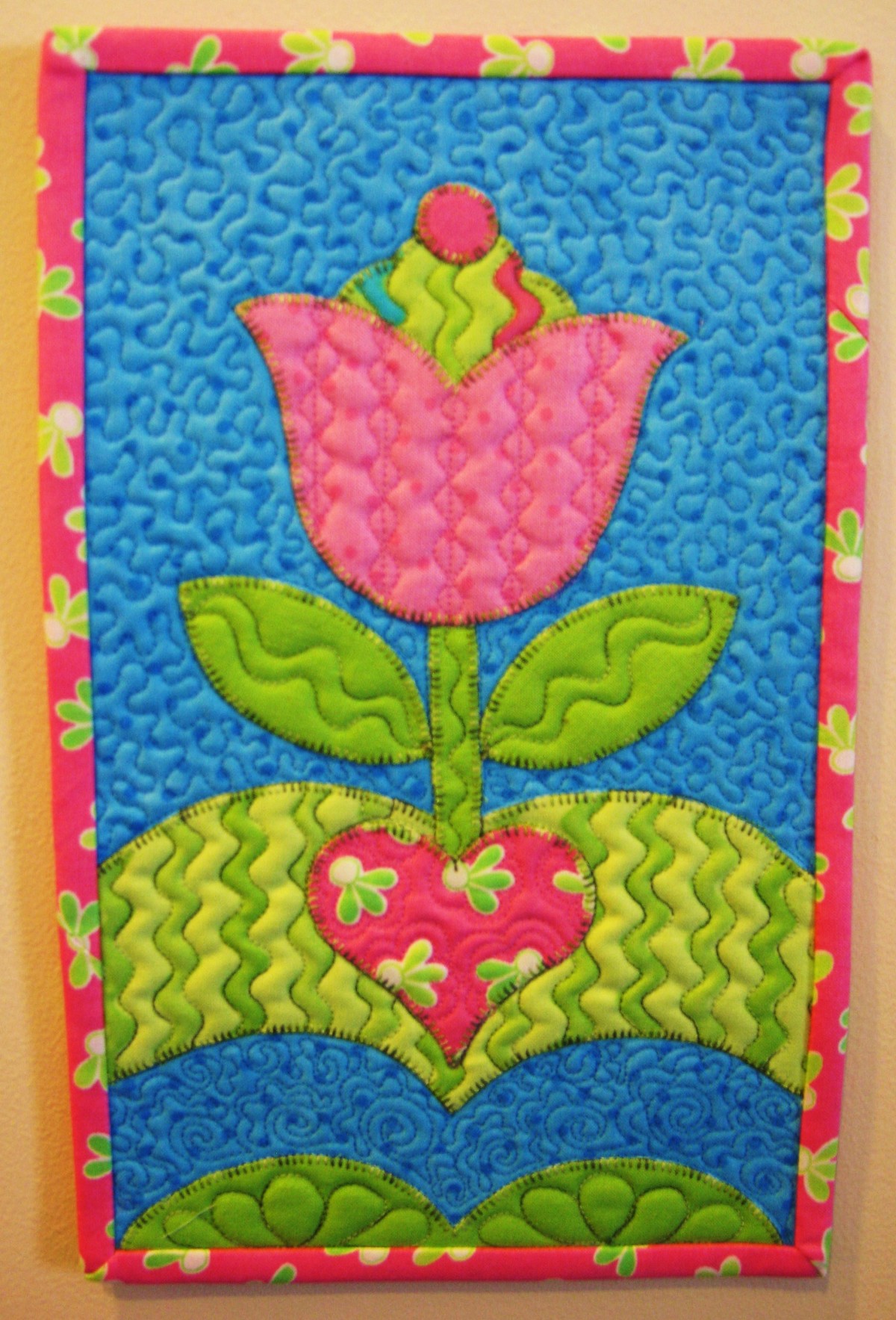 Description: A cute mini-quilt using fusible machine appliqué.