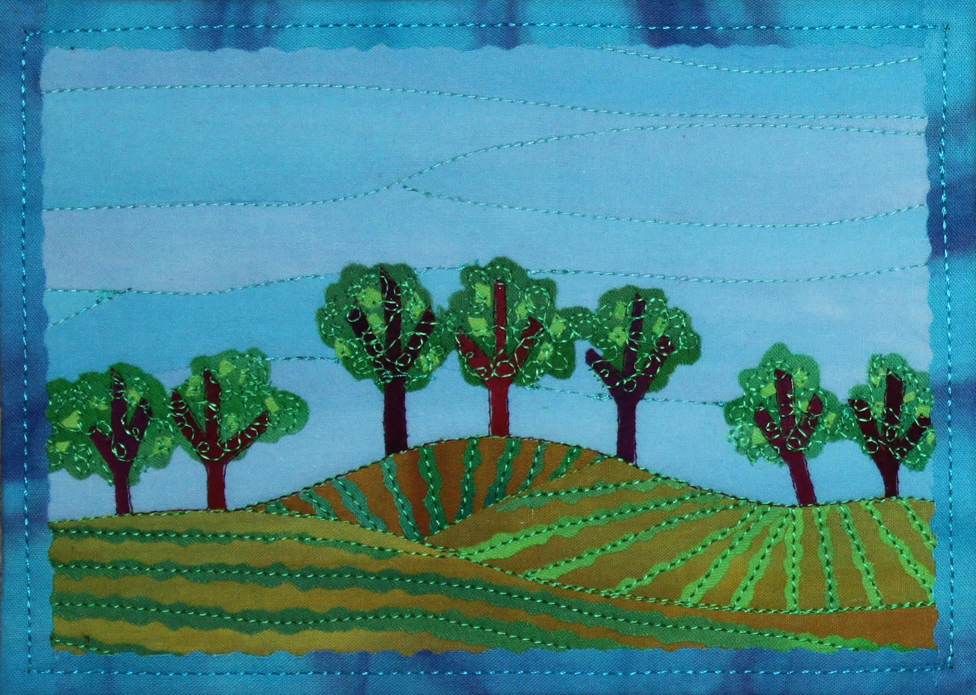 Description: Add a bit of Autumn to your home’s décor with this easy and fun table runner. The AccuQuilt Go! makes fast work use of cutting all the small pieces, so you can get going on the fun part—the needlework. The Olfa wave blade also helped to cut the multi colored edging.