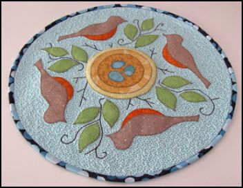 Description: Cheerful robins are a sure sign that winter is over and the warm days of spring are on the way. This small quilt is fat quarter friendly and can be completed quickly using fusible and machine appliqué techniques.