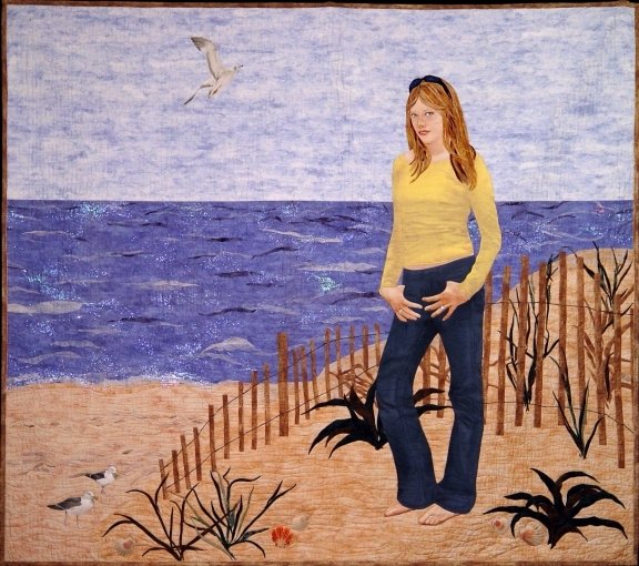 BonnieMcCaffery Abby on the Beach - Abby is my youngest daughter. Her face, hands, feet, and clothing are handpainted using the technique from my "Portrait Quilts: Painted Faces You Can Do" book.