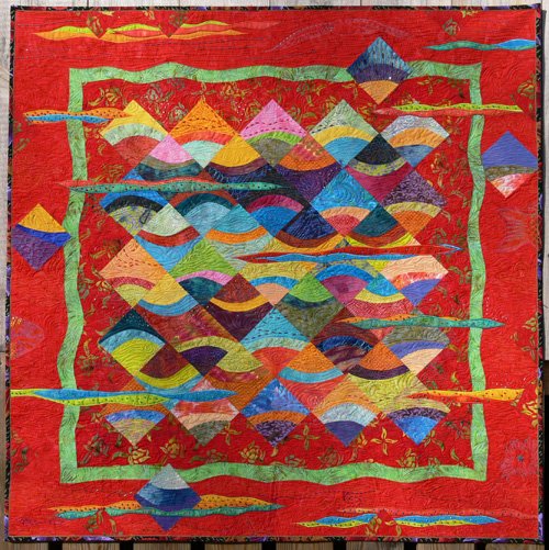 SarahAnnSmith The Tide is Hire - Using a piecing technique learned from Dianne Hire, I made this quilt for (and it got into!) the Viking Masterpieces Exhibit "Imagine That." Pieced, Applique, beading, machine quilting.