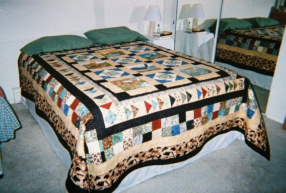 | Design Source - Description | All flannel featuring things my husband loves. Started as a lap quilt, grew to king-size to keep us warm in winter. It weighs a TON! But it's warm! |