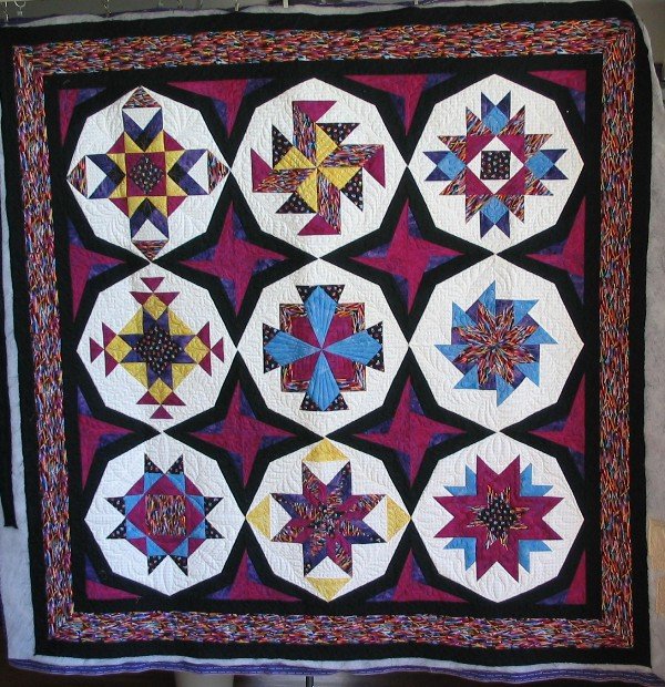 | Design Source - Description | This was a challenge in our Bee, to set 12" blocks in an unusual way. These are sort of my signature colors, brights with blacks and whites |